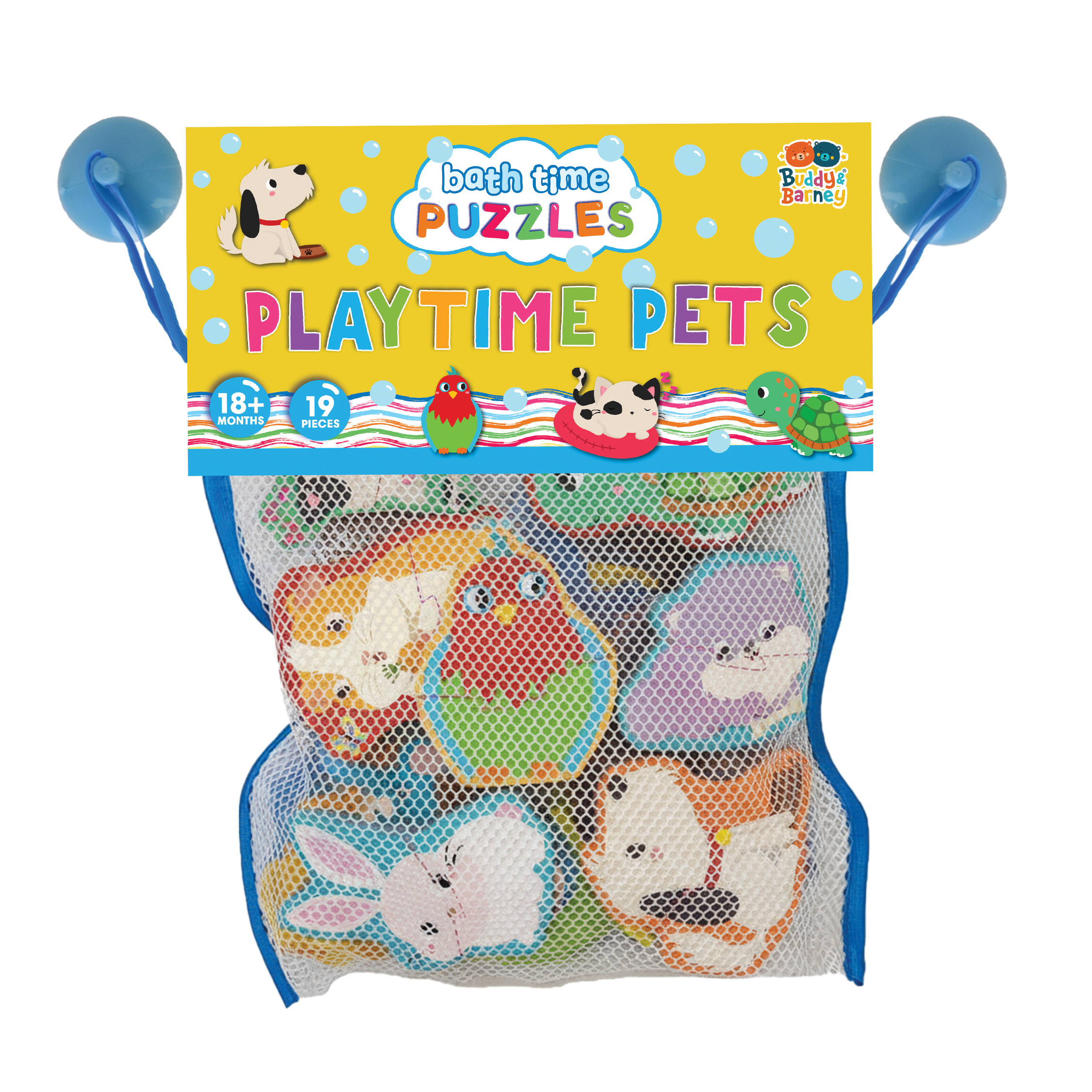 NEW PRODUCT! Transform bath time into an adventure with these playtime pets bath puzzles! The chunky, friendly foam pieces stick to the tub when wet and float happily on the water. The puzzles are 2-piece puzzles, perfect for little ones.